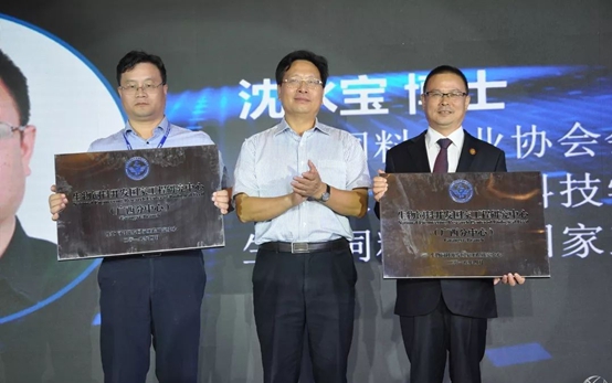 百洋集團食品事業(yè)部運營中心總監(jiān)助理劉海(左三)代表公司上臺受頒“農(nóng)業(yè)農(nóng)村部生物飼料質(zhì)量安全預(yù)警項目監(jiān)測站”牌匾。
