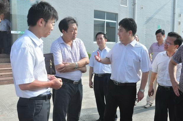 鄧永明書記(左四)向郭志偉副司長(左二)介紹企業(yè)相關(guān)情況。