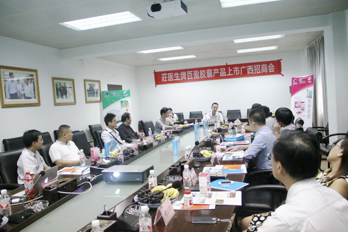2014年9月13日,百洋股份全資企業(yè)廣西嘉盈生物科技有限公司在南寧召開了“荘醫(yī)生”牌百盈膠囊產(chǎn)品上市廣西招商會。會議由嘉盈公司總經(jīng)理陸田主持,集團(tuán)總裁助理李逢青以及來自廣西區(qū)內(nèi)的多名保健品經(jīng)銷商出席了此次會議。