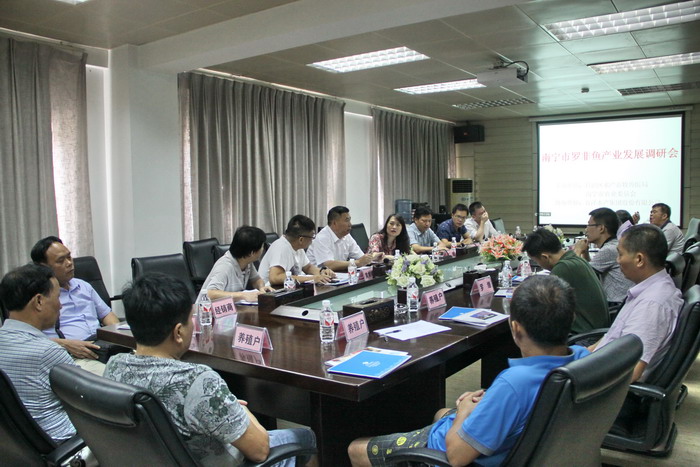 2015年7月9日,由自治區(qū)水產(chǎn)畜牧獸醫(yī)局、南寧市農(nóng)業(yè)委員會聯(lián)合主辦,百洋股份協(xié)辦的南寧市羅非魚產(chǎn)業(yè)發(fā)展調(diào)研會在南寧百洋食品有限公司舉行。會議邀請了區(qū)水產(chǎn)畜牧獸醫(yī)局等相關(guān)部門領(lǐng)導(dǎo)、養(yǎng)殖戶、經(jīng)銷商、飼料企業(yè)代表參加,共同解析羅非魚產(chǎn)業(yè)形勢,透析國內(nèi)外貿(mào)易市場行情,交流羅非魚養(yǎng)殖技術(shù)與心得體會。